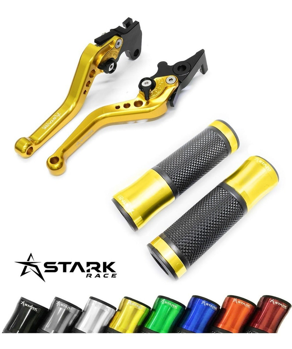 KIT MANETE E MANOPLA V2 STARK RACECom os Manetes esportivo Stark Race você terá mais opções de ajuste de distância em comparação aos convencionais. Assim, você pode encontrar o posicionamento que mais se aproxima de seu conforto, mesmo com o uso de luvas de proteção confeccionados com materiais mais espessos.O peso do manete também exerce bastante influencia no conforto e agilidade do motociclista, sendo assim, os manetes esportivos Stark Race são fabricados com materiais que os tornam mais leves porém resistentes, sem contar que o nível de precisão ao pressionar fica muito mais evidente.A precisão do manete também pode impactar no funcionamento mecânico da moto. Ao utilizar um manete rígido ou impreciso, há a possibilidade da motocicleta sofrer pequenos trancos durante o pressionamento da embreagem que a longo prazo podem ocasionar desgaste em algumas peças.A manopla universal Stark Race V2 é leve e confortável possui um formato anatômico que facilita a pegada em borracha antiderrapante e alumínio anodizado ela irá reduzir a sensação de vibração em sua pilotagem, além de deixar sua motocicleta com um visual inovador e moderno.ATENÇÃOA MANOPLA STARK RACE V2 É VAZADA PARA USO DO PESO ORIGINAL DE SUA MOTOAplicaçãoProduto Universal para Guidões 7/8 (22 mm).ESTA MANOPLA NÃO SERVE EM MOTOS COM ACELERADOR ELETRÔNICOMedidasPara guidão 7/8 (22mm).Comprimento: 120mmGramatura das peçasManopla 155g o parManete 250g o parDescrição:Acabamento em alumínio anodizado;Confortavel;Manopla 12cm;Aplicação Universal para Guidão 22 mm 7/8;Material: Alumínio 6061-T6 Anodizado;Processo de fabricação: Usinagem com máquina CNC para precisão;Parafusos em aço inoxidável;Manete Modelo: Curto (14 cm);6 Regulagens.Marca:Stark Race.Disponível para:Honda NX 400 FalconItens incluso no kit:01 PAR Manetes01 PAR ManoplasATENÇÃOPara que a instalação e funcionamento da peça ocorra perfeitamente, recomendamos que o produto seja instalado pelo profissional especializado.