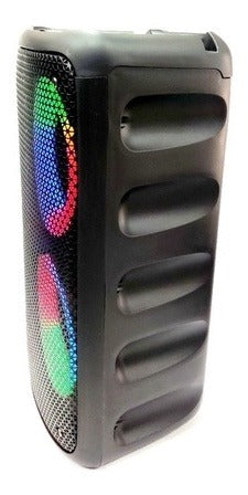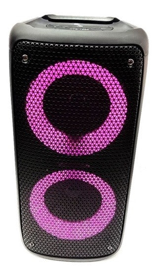 Principais caracteristicas:- 2 Super alto-falantes- Luzes em Led colorida- 20w de potencia - Entrada Pendrive- Entrada para SD- Entrada auxiliar- Bateria com 2400mAh- Super Bass- Rádio FM- Suporta SD com até 32GB- Bluetooth compatível com Android e IphoneMedidas:40cm de altura20cm de largura 18cm profundidade