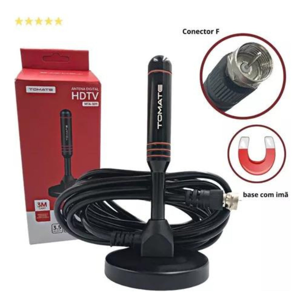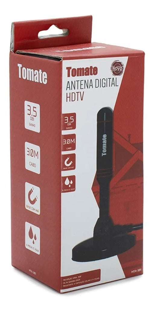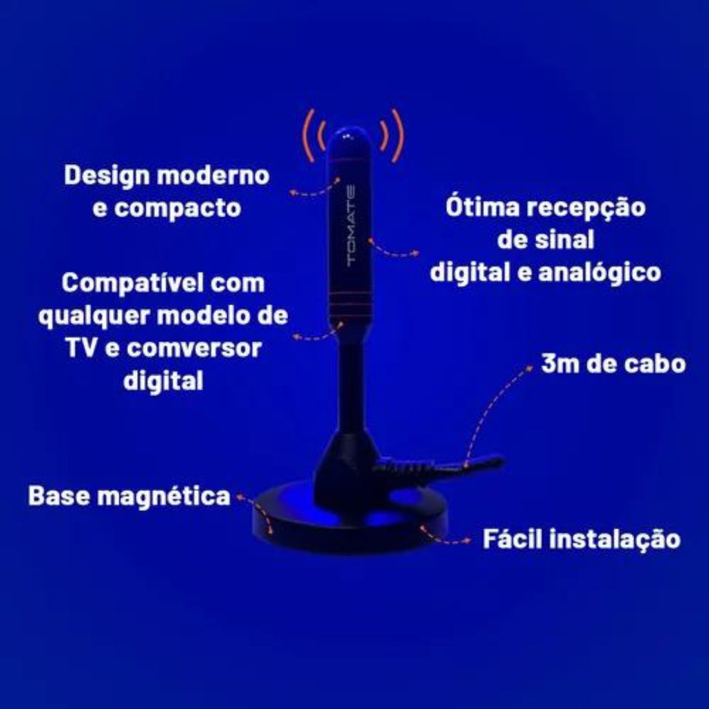 A Antena Digital Interna Ima Tomate MTV-3011 HDTV UHF Cabo 3m é a escolha perfeita para quem busca qualidade e praticidade na recepção de sinal de TV digital terrestre. Com sua faixa de frequência UHF, ela garante uma excelente captação de sinal, proporcionando uma imagem nítida e som de alta qualidade. Seu design interno permite uma instalação discreta e fácil, sem a necessidade de grandes ajustes. Feita em plástico resistente, essa antena possui uma faixa de recepção de até 1 km, garantindo uma ótima cobertura. Aproveite essa oportunidade e tenha uma experiência de TV digital incrível com a Antena Digital Interna Ima Tomate MTV-3011 HDTV UHF Cabo 3m.Principais características:Ganho de 3,5 dBiFrequência: UHF 470-862 MHzPolarização: Linear HorizontalImpedância: 75 ohmsV.S.W.R: igual ou menor 1,5Banda larga: 1800/2600Comprimento do cabo: 3 metrosConector: FVantagens:Alta qualidade de imagem e somCaptação de sinal de TV digital com facilidade, mesmo em locais com sinal fracoPode ser instalada tanto dentro quanto fora de casaCabo coaxial de 3 metros de comprimentoConector F que facilita a conexãoPERGUNTAS MAIS FREQUENTES:Em minha cidade ainda não tenho disponível o sinal digital, a antena vai funcionar em minha TV?Resposta: NÃO. A antena é projetada para operar com sinal digital, se você consegue assistir televisão sem o sinal digital disponível, é porque sua TV é analógica. Neste caso, mesmo que compre um conversor e instalar a antena, ela não funcionará adequadamente.Descascar o cabo coaxial ou usar um adaptador para ligar a antena digital diretamente em sua TV analógica também não vai resolver o problema. É provável que a antena capte o sinal analógico com deficiencia, resultando em imagens e sons com ruído ou apenas um chuvisco na tela. Sem o sinal digital é melhor continuar utilizando a sua antena atual.Tenho uma TV analógica, ela funcionará com a antena digital?Resposta: Para que isto seja possível, primeiro, é necessário que em sua região haja sinal digital de TV disponível.Segundo, você precisará de um conversor de sinal analógico/digital de TV. Lique a entrada da antena da TV na saída analógico do conversor e antena digital na entrada digital do conversor.Tenho sinal digital disponível em minha cidade e a minha TV não consegue captar todas canais de minha cidade, a antena digital pode resolver o problema?Resposta: É importante entender que o sinal digital de TV não alcança todas a localidades de uma cidade com a mesma intensidade. Regiões montanhosas, vales isolados, nuvens frequentes podem afetar a qualidade do sinal. Outro aspecto negligenciado é a existência de paredes de concreto e grandes áreas de mata que também podem bloquear o sinal. A antena é do tipo OMINIDIRECIONAL, que tem recepção em 360º e é uma solução que funciona na maioria dos casos, se alguém afirmar que uma antena pode captar todos os canais em qualquer circunstância, desconfie.Esta antena capta sinal de satélite?Resposta: NÃO! Esta antena não foi projetada para captar sinal de satélite. Se deseja captar sinais de satélite consulte um técnico para avaliar a disponibilidade do serviços em sua região.
