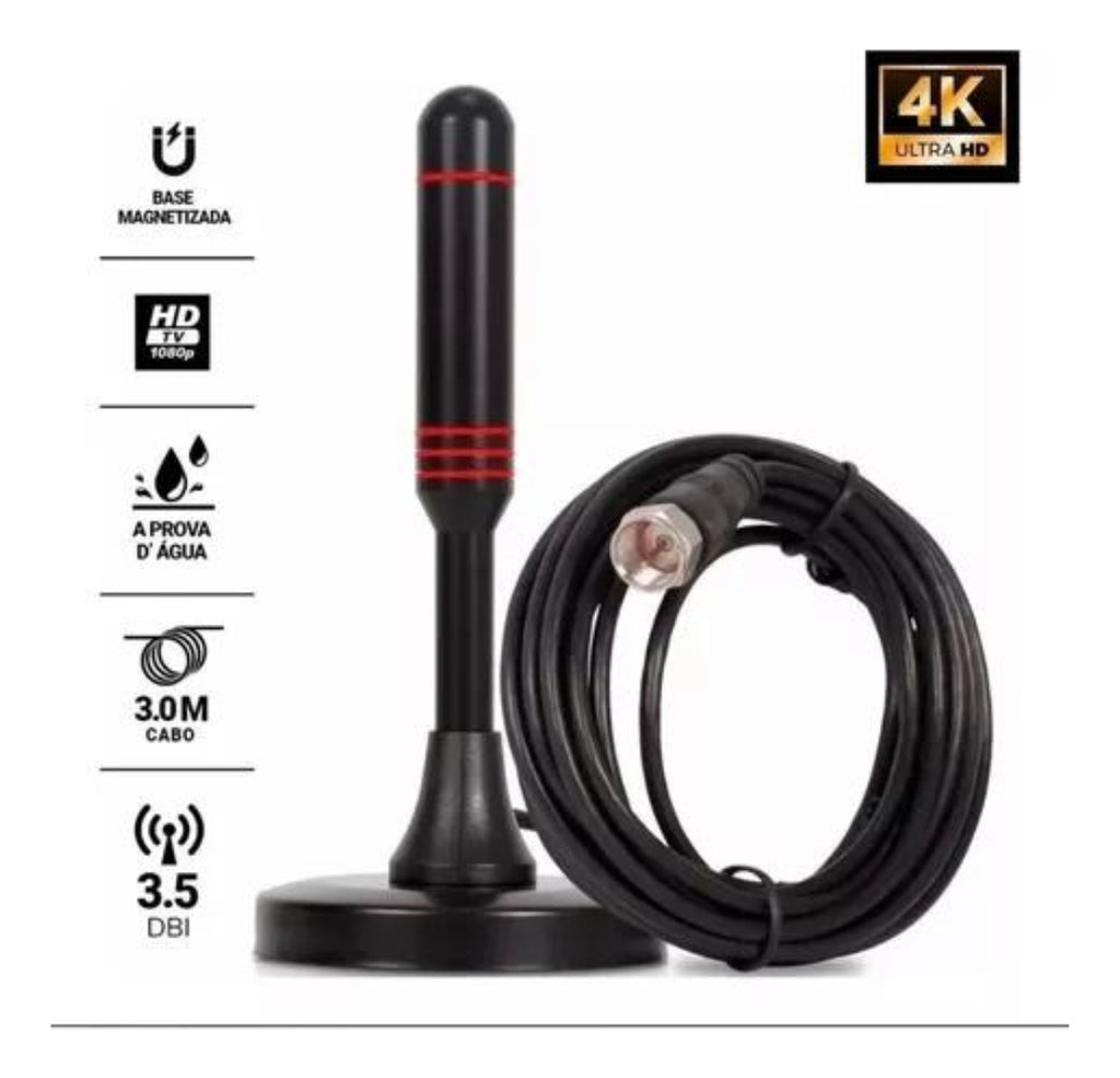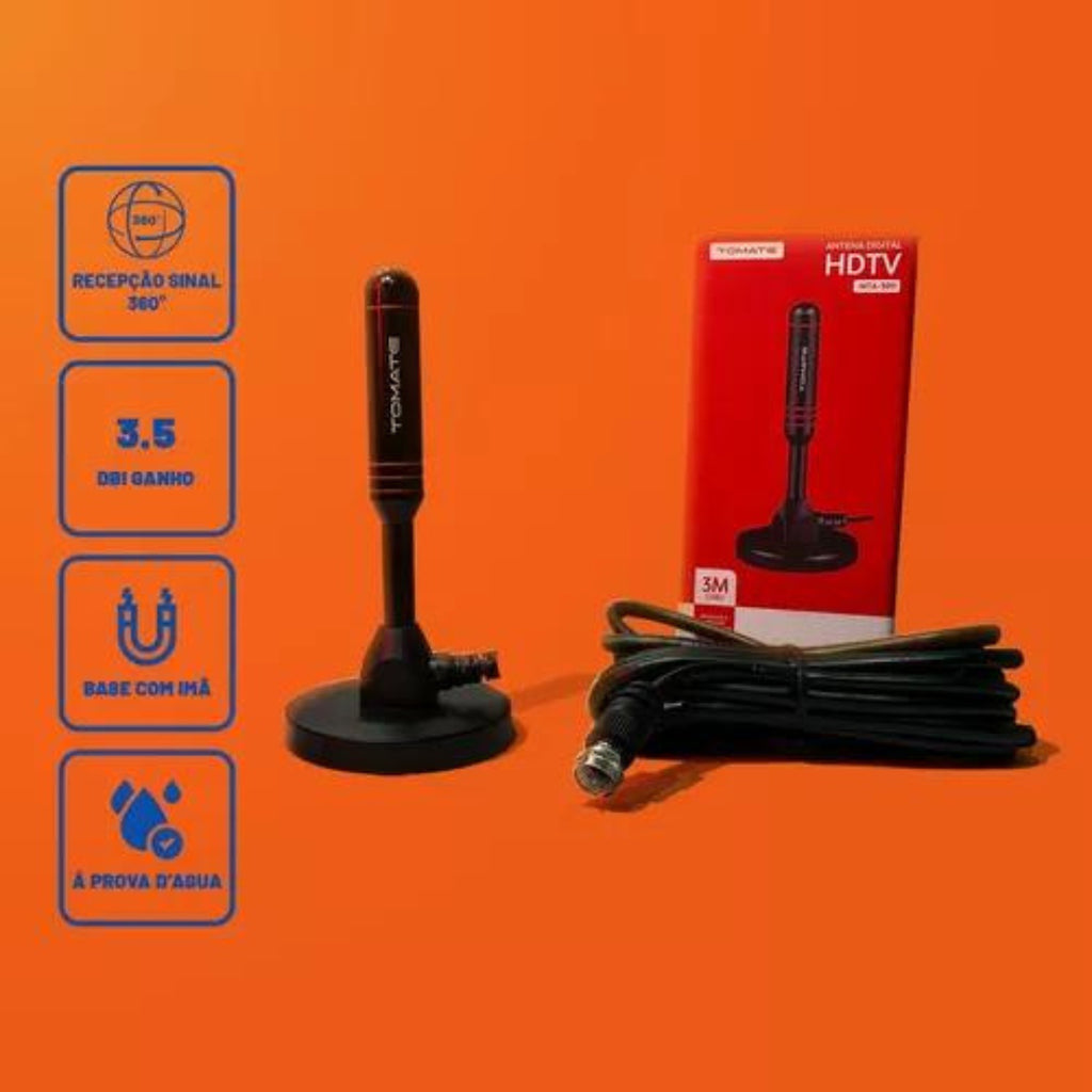 A Antena Digital Interna Ima Tomate MTV-3011 HDTV UHF Cabo 3m é a escolha perfeita para quem busca qualidade e praticidade na recepção de sinal de TV digital terrestre. Com sua faixa de frequência UHF, ela garante uma excelente captação de sinal, proporcionando uma imagem nítida e som de alta qualidade. Seu design interno permite uma instalação discreta e fácil, sem a necessidade de grandes ajustes. Feita em plástico resistente, essa antena possui uma faixa de recepção de até 1 km, garantindo uma ótima cobertura. Aproveite essa oportunidade e tenha uma experiência de TV digital incrível com a Antena Digital Interna Ima Tomate MTV-3011 HDTV UHF Cabo 3m.Principais características:Ganho de 3,5 dBiFrequência: UHF 470-862 MHzPolarização: Linear HorizontalImpedância: 75 ohmsV.S.W.R: igual ou menor 1,5Banda larga: 1800/2600Comprimento do cabo: 3 metrosConector: FVantagens:Alta qualidade de imagem e somCaptação de sinal de TV digital com facilidade, mesmo em locais com sinal fracoPode ser instalada tanto dentro quanto fora de casaCabo coaxial de 3 metros de comprimentoConector F que facilita a conexãoPERGUNTAS MAIS FREQUENTES:Em minha cidade ainda não tenho disponível o sinal digital, a antena vai funcionar em minha TV?Resposta: NÃO. A antena é projetada para operar com sinal digital, se você consegue assistir televisão sem o sinal digital disponível, é porque sua TV é analógica. Neste caso, mesmo que compre um conversor e instalar a antena, ela não funcionará adequadamente.Descascar o cabo coaxial ou usar um adaptador para ligar a antena digital diretamente em sua TV analógica também não vai resolver o problema. É provável que a antena capte o sinal analógico com deficiencia, resultando em imagens e sons com ruído ou apenas um chuvisco na tela. Sem o sinal digital é melhor continuar utilizando a sua antena atual.Tenho uma TV analógica, ela funcionará com a antena digital?Resposta: Para que isto seja possível, primeiro, é necessário que em sua região haja sinal digital de TV disponível.Segundo, você precisará de um conversor de sinal analógico/digital de TV. Lique a entrada da antena da TV na saída analógico do conversor e antena digital na entrada digital do conversor.Tenho sinal digital disponível em minha cidade e a minha TV não consegue captar todas canais de minha cidade, a antena digital pode resolver o problema?Resposta: É importante entender que o sinal digital de TV não alcança todas a localidades de uma cidade com a mesma intensidade. Regiões montanhosas, vales isolados, nuvens frequentes podem afetar a qualidade do sinal. Outro aspecto negligenciado é a existência de paredes de concreto e grandes áreas de mata que também podem bloquear o sinal. A antena é do tipo OMINIDIRECIONAL, que tem recepção em 360º e é uma solução que funciona na maioria dos casos, se alguém afirmar que uma antena pode captar todos os canais em qualquer circunstância, desconfie.Esta antena capta sinal de satélite?Resposta: NÃO! Esta antena não foi projetada para captar sinal de satélite. Se deseja captar sinais de satélite consulte um técnico para avaliar a disponibilidade do serviços em sua região.