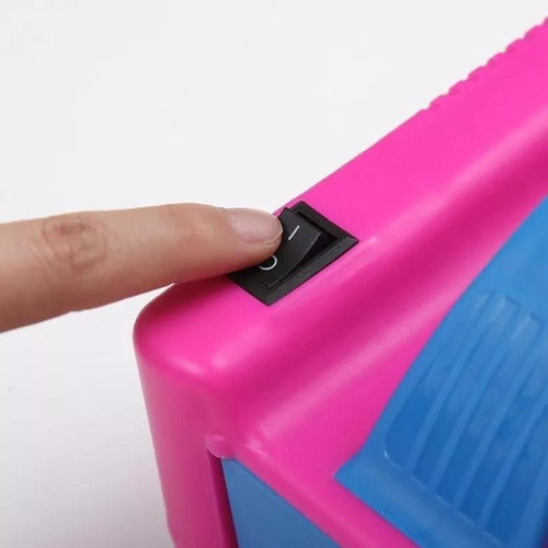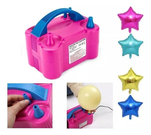 Atenção: voltagem 110vInflador compressor bomba balões bexigas 2 bicos festasDesign leve, inteligente, portátil e prático deUtilizar, para festas e eventos, atividadesPromocionais e publicidade.Enche dois balões simultaneamenteRapidamente.Seus bocais foram desenvolvidosPara tornar a operação muito mais fácil, bastaEncaixar o balão e inflá-lo.Potente, de baixoRuído e pés em borracha, para se fixar melhorÀ superfície.Dois modos de operação:Touch on (a bomba liga ao encostar a bexiga no pino eDesliga quando retira). Modo contínuo (a bomba funcionaráContínuamente).Duas ponteiras para balões com bico fino.Tampa abre/fecha e saída do fio(comprimento do fio: 150 cm)Alta pressão e fácil operação.Possui textura antiderrapante.Acompanha 2 bicos.Potência: 600w.Barulho : 85 dbMaterial: plástico.Voltagem: 110vCor disponível: apenas rosa.Dimensões: altura: 16 cm largura: 12 cm comprimento: 19,5 cm.