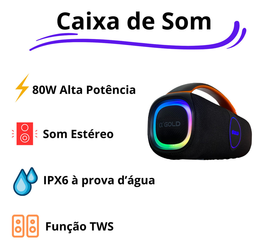 Caixa De Som 80w Grave Potente Estéreo Tws Sem Fio Portátil