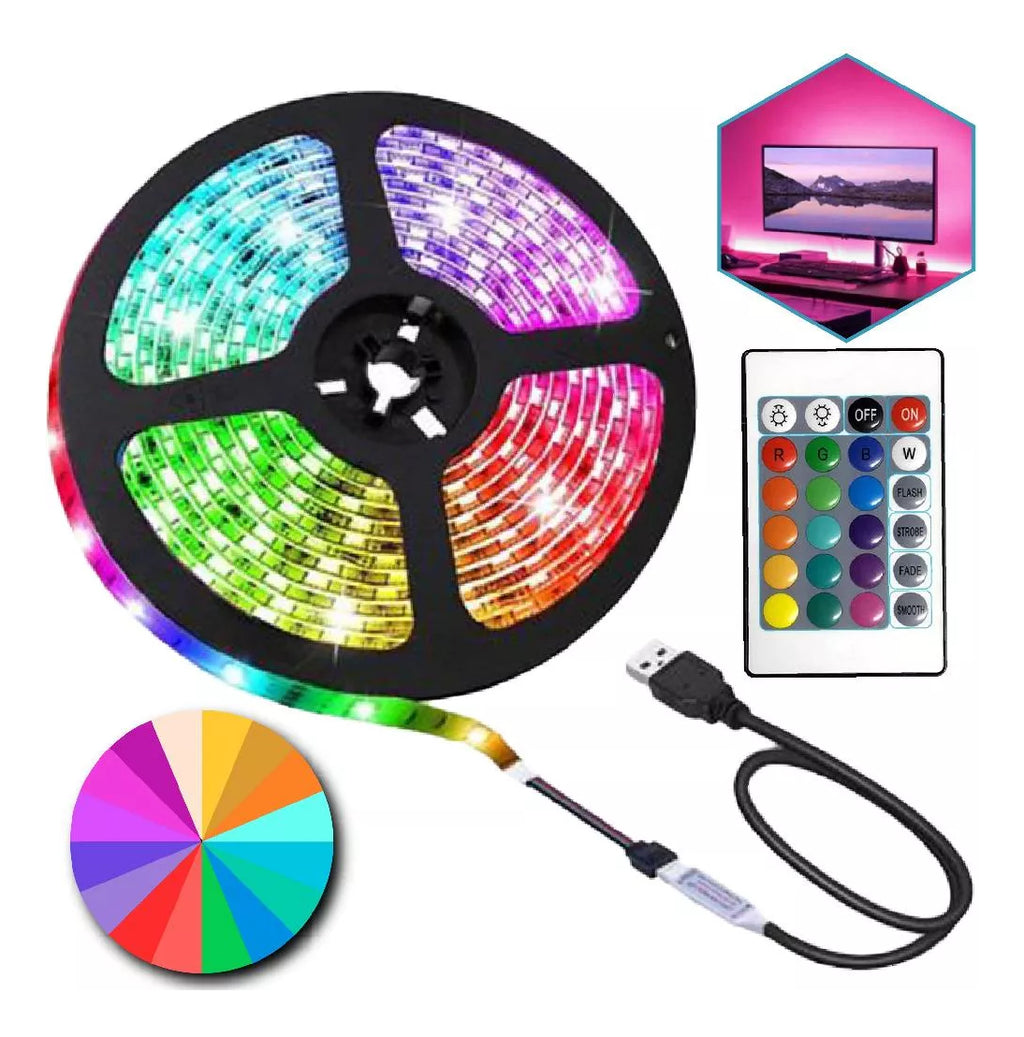 Fita de led rgb 5050 com 5 metros e controle remoto