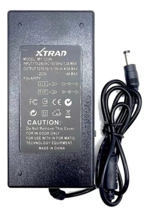 Proibido mudar a voltagem (Chave Seletora) durante uso !!!Faça a pergunta antes de comprar e se atente a amperagem do produto para verificar se é compatível com seu aparelho. O produto não é para todos os modelos !!!Não possui o pino maior para HP1 ) 6.0mm OD, 5.0mm ID (com um pino no meio)2 ) 6.0mm OD, 4.0mm ID (aproximadamente)3 ) 5.0mm OD, 3.0mm ID (aproximadamente)4 ) 5.0mm OD, 2.5mm ID5 ) 5.5mm OD, 2.0mm ID6 ) 4.0mm OD, 2.0mm ID (aproximadamente)7 ) 3.5mm OD, 2.0mm ID (aproximadamente)8 ) 3.0mm OD, 1.5mm ID (aproximadamente)9 ) 5.5mm OD, 3.0mm ID (com um pino no meio)Base: 5.0mm OD, 2.0mm IDChaves Seletora:12V = 6A15V = 6A16V = 6A18V = 6A19V = 6A20v = 6A24V = 6A- Proteção contra curto circuito e sobrecarga.- Saída estabilizada, baixo ripple e baixa interferência.- Voltagem de saída ajustável.- Alta eficiência e baixo consumo de energia.- Power LED para monitorar a alimentação.- Simplesmente altere a chave seletora de tensão para utilizar em dispositivos diferentes.- Encaixa na maioria dos notebooksItens Inclusos- 1x Fonte Universal 120w- 1x Cabo de força Ac- 1x Kit com 9 plugs