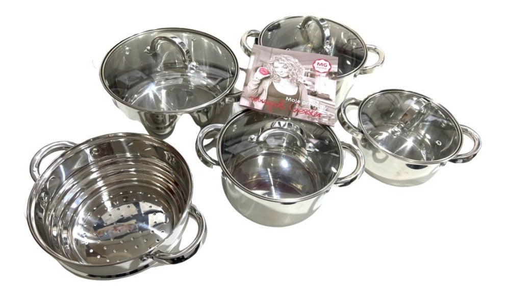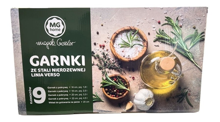 AÇO INOXIDÁVEL LINHA VERSA Uma linha de potes da série MG home feitos com a mais alta qualidade aço inoxidável. O aço utilizado consiste em liga da melhor qualidade, que garante resistência à corrosão e durabilidade. tem alta propriedades térmicas que reduzem o tempo de cozimento e por um longo período mantenha morno. Inserção de vapor incluída. Um fundo grosso com uma camada de alumínio evita queimaduras e aderência ferir pratos. As loiças são equipadas com modernos e práticos e alças sem aquecimento que sempre permanecem frias. As panelas desta série podem ser utilizadas em todos os tipos de fogões.A ESCOLHA PERFEITA PARA PESSOAS COM ALERGIA Medidas capacidade Espesso fundo multicamadas Seguro alças AÇO INOXIDÁVEL LINHA VERSA Pote com tampa 16 cm, capacidade 1.81 Pote com tampa 18 cm, capacidade 2.51 Pote com tampa 20 cm, capacidade 3.31 Pote com tampa 22 cm, capacidade 4.51 Inserção de vapor Ø 20 cm ELEMENTOS Manual do usuário Leia todo o manual de instruções antes de usar a panela pela primeira vez. Guarde o manual e guarde-o facilmente lugar disponível. Para facilitar o uso das alças por outros usuários em potencial, guarde a embalagem e as instruções serviço. Para garantir uma cooperação adequada entre o fogão e a placa, siga as orientações contidas no manual de instruções fabricantes de placas. A seleção correta do diâmetro da panela para o tamanho da zona de aquecimento evitará que a panela superaqueça e perca energia. 3. Com base em pd. 1 das instruções, use fontes de calor apropriadas. Não aqueça uma panela vazia no fogão. Antes de aquecer a panela, encha-a com água, óleo, gorduras O calor deve ser aumentado gradualmente para evitar choque térmico. No caso de fogão a gás, a chama deve estar presente colocados sob a alça e não se estendem além da base. ATENÇÃO! Ao usar um fogão de indução, ele renasce iniciando o processo de aquecimento a partir da potência mais alta, a chamada Funkqi Booster, pode expor o jogo a danos Não coloque um prato frio na placa, por exemplo, previamente retirado do frigorífico. Por sua vez, o prato quente e não mergulhe a tampa nem a encha com água fria, pois pode deformar o fundo ou danificar a tampa. Uma panela com deformação significativa deve ser retirada de serviço 6. Não deixe o líquido ferver completamente para fora da gaze. Para lavar a panela e a tampa, deixe-os esfriar à temperatura ambiente antes Recomenda-se proteger o gamek e a tampa contra arranhões, hematomas e impactos Não corte ou divida alimentos no prato Ao preparar alimentos, use acessórios feitos de materiais que não risquem a superfície O prato não deve queimar 15 Recomenda-se reduzir a potência do forno ao levar os alimentos à fervura, para poupar energia. A panela e a tampa ficam quentes durante o uso. ATENÇÃO! Use luvas de proteção ao tocar nas alças e tampas 17. Ao retirar o tacho da placa de indução, recomenda-se levantá-lo para evitar riscar a placa Não coloque panelas em um fogão sujo 18. Durante o cozimento ou lavagem, manchas brancas ou pretas podem se depositar nas paredes, são substâncias minerais. O fenômeno natural das manchas resultantes pode ser removido usando água com suco de limão ou vinagre de vinho. Adicione sal de cozinha depois que a comida ferver. Este comportamento evitará o aparecimento de corrosão e depósitos brancos. As panelas de aço inoxidável não se destinam ao armazenamento de alimentos e não devem ser usadas Isto é especialmente verdadeiro para alimentos ácidos e secos Não use a panela no micro-ondas e no forno 22 Tenha cuidado para manter as panelas quentes fora do alcance das crianças. Manutenção Ao usá-lo pela primeira vez, lave o gamek em água morna com a adição de detergente líquido. Em seguida, ferva a água na panela 3 vezes e despeje. Após cada cozimento, o recipiente deve ser resfriado e lavado em água morna com detergente Instruções para sujeira pesada e queimaduras Carregue gamek com água morna e detergente, deixe por um longo tempo Se a sujeira ainda grudar, você pode aquecer a água com o líquido até ferver, retire os restos com uma ajuda ferramenta de cozinha. Após a lavagem, seque o gamek com um pano 5 Não é recomendado o uso de esfregões com estrutura pontiaguda para limpeza. Não use detergentes fortes com propriedades cáusticas e de branqueamento para limpeza Armazenar Coloque as apostas fora do alcance das crianças. Armazene de forma que a superfície do tapete não entre em contato com outros pratos Para guardar pratos colocados dentro de outros, recomenda-se o uso de um translator em forma de pano ou papel toalha.