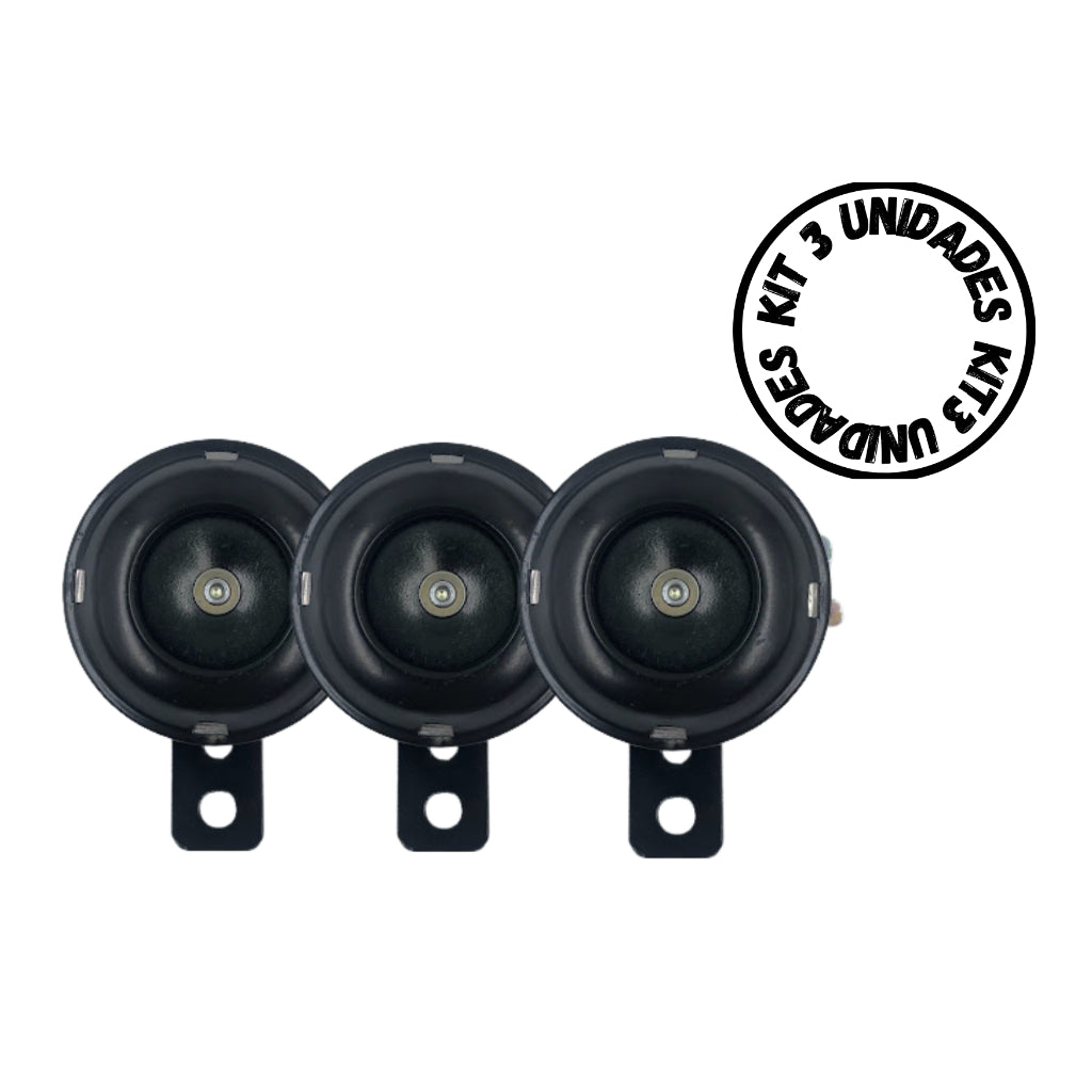 Kit 3 Buzina Universal para Moto Modelo Paquerinha 12V Preto