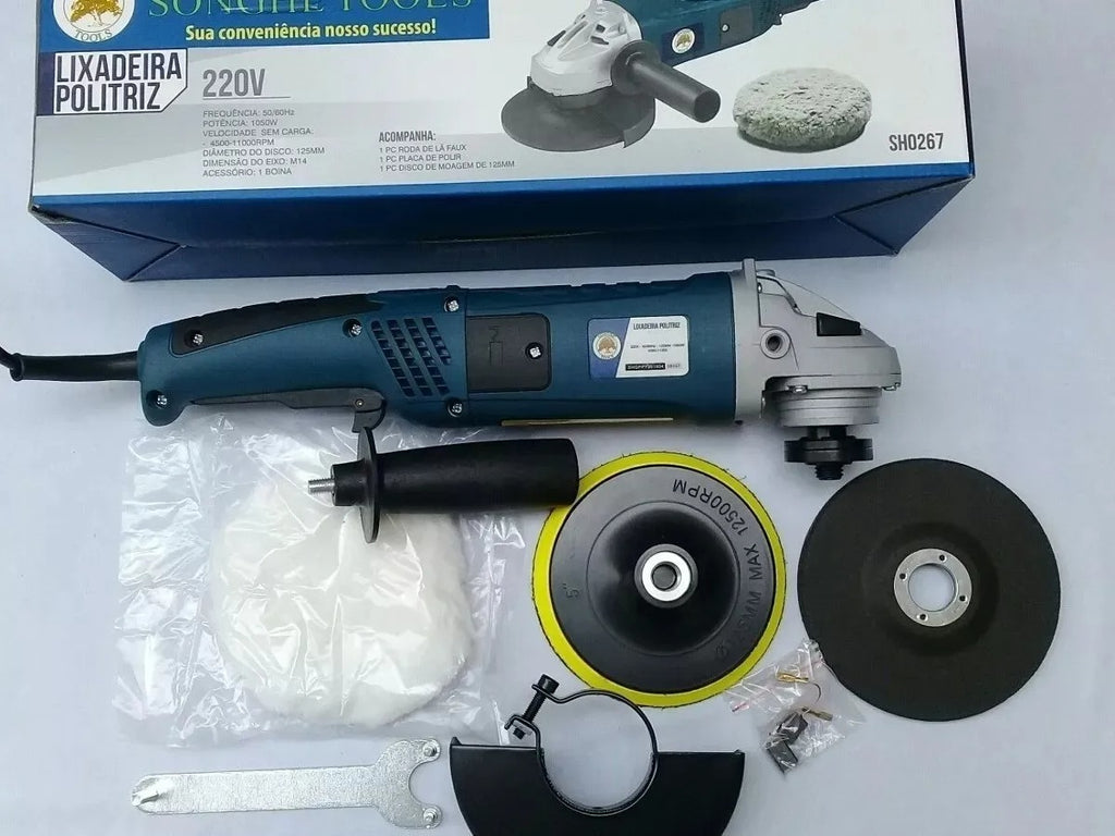 DescriçãoCaracterísticas:- Produtividade com baixo custo- Agilize o trabalho com qualidade e conforto- Comodidade em qualquer posição- Formato anatômico e empunhadura com ótima pegada com segurança e menos cansaço.- Qualidade e rapidez no acabamentoLixamento em diversos tipos de superfícies- Indispensável para hobbystas e profissionais- Empunhadura emborrachada- Regulador de velocidade de 1 a 6- Cabo de alimentação com 1,9 metrosEspecificações:Eixo: M14 padrãoPotência: 1050 wattsRotação: de 450 a 11000 RPMDiâmetro do disco: 125 mm ou 4.1/2”Conteúdo:- 1 Lixadeira- 1 Cabo de apoio- 1 Boina de polimento- 1 Chave para montagem- 1 Prato para lixa com velcro- 1 Disco de desbaste 4 polegadas- 1 Jogo de escova de carvão extra- 1 Capa de proteção para disco corte- 1 Manual de instrução com certificadoDimensões da Maquina- Comprimento: 37 cm- Altura: 11 cm- Largura: 08 cm- Peso: 2 kgDimensões da Embalagem- Comprimento: 39 cm- Altura: 12 cm- Largura: 12 cm- Peso: 2,6 kgCÓDIGO DE BARRAS: 7814562001152Temos uma linha inteira de ferramentas e Maquinas com os melhores preços do Brasil.Temos todos tipos de ferramentas para construção e decoração.São Mais De 300 Tipos de Ferramentas.Garantia Contra Defeitos de FabricaçãoAtendemos todo o Brasil