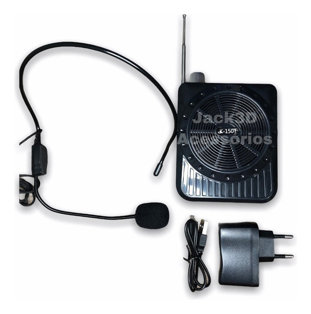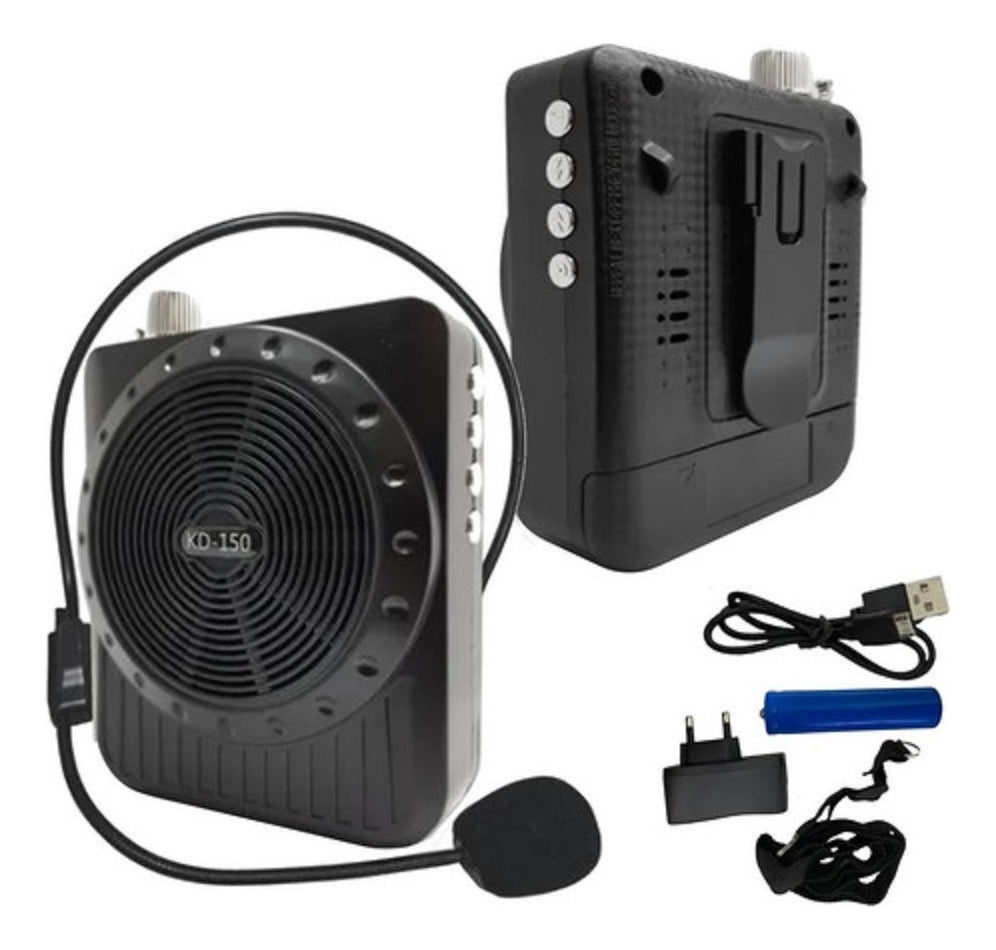 Amplificador Megafone Microfone Kit Som Alto Professores K15O Amplificador de Voz D-K150 Grasep possui um sistema de áudio que possibilita a você ser ouvido nitidamente e com um bom alcance. O headset é leve e anatômico pensado no seu conforto.Esse modelo possui bateria recarregável de grande capacidade, auto falante potente, além de poder ser utilizado como Power Bank para recarregar outros dispositivos e rádio FM. Produto ideal para usar em aulas, palestras, workshops e turismo, ou qualquer atividade que reúnam pessoas em grupo. Microfone auricular incluso. Entrada para Pen Drive de capacidade até 16GB. Gravador de voz. Botões de anterior, próximo, reprodução e play pause, memória. Antena pare recepção FM.Megafone Amplificador Voz Microfone Professor USB MP3 Fone Ouvido Aula PalestraProduto essêncial para profissionais de ensino, comunicação, palestrantes entre outras, com esse amplificador sua voz irá alcançar seu público com som auto e claro. Suas aulas, palestras, convenções e reuniões de trabalho mais nítida e clara.Especificações:Marca: GrasepModelo:D-K150Peso:192gDimensões CLA: 9,0 cm x 3,5 cm x 10,7 cmConexões: Microfone, USB (pen drive), auxiliar p2Entrada para MicroSD/Mmc até 16GBRádio Fm digital com busca automática de alta sensibilidadeEntrada para fonte ou carregador externo 5V(função Power Bank) carrega seu celularAmplificador integrado de alto ganhoResposta de frequência entre 200 a 18KHZImpedância: 4 OhmsBateria de alta capacidadeAlto falante de 3 polegadasDisplay digital indicador de carga/ operaçãoPotencia: 5W RMSCor: PretoItens inclusos:1 Caixa Multi-Função Alto-Falante Megafone D-K1501 Headset com plug P21 Adaptador de energia1 Alça de mão para transporte1 Manual