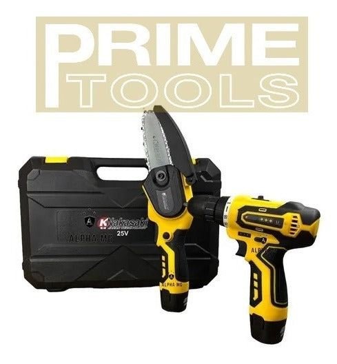 KIT PARAFUSADEIRA + MINI MOTOSERRABenefícios da Parafusadeira / Mini Motoserra NAKASAKI- Tempo de carregamento da bateria: 3 a 5 horas.- LEDS para melhor visibilidade do local de trabalho- Cabo com revestimento emborrachado, proporcionando maior conforto ao operador- Bateria de íons de lítio que confere alta eficiência de operação- Carregador bivolt automático com tensão de entrada de 100 V~ - 240 V~Itens Inclusos:- 1 maleta- 2 baterias de 25V- 1 carregador bivolt automático- Motoserra- ParafusadeiraBaterias 25V 2.0 Ah - Íons de lítioCapacidade do mandril:3/8 - 10 mmTipo de mandril:Aperto rápidoTipo de velocidade:VariávelRotação da Furadeira/parafusadeira:0 - 1350/minSistema de reversão:ReversívelFrequência (Hz):50 *********************************************************************************************************************Prezado cliente, agradecemos pela preferência.Sua satisfação é muito importante para nós, por isso testamos todos nossos produtos antes de enviá-los.Estamos à disposição.Nosso horário de atendimento via Mercado Livre e WhatsApp********************************************************************************************************************