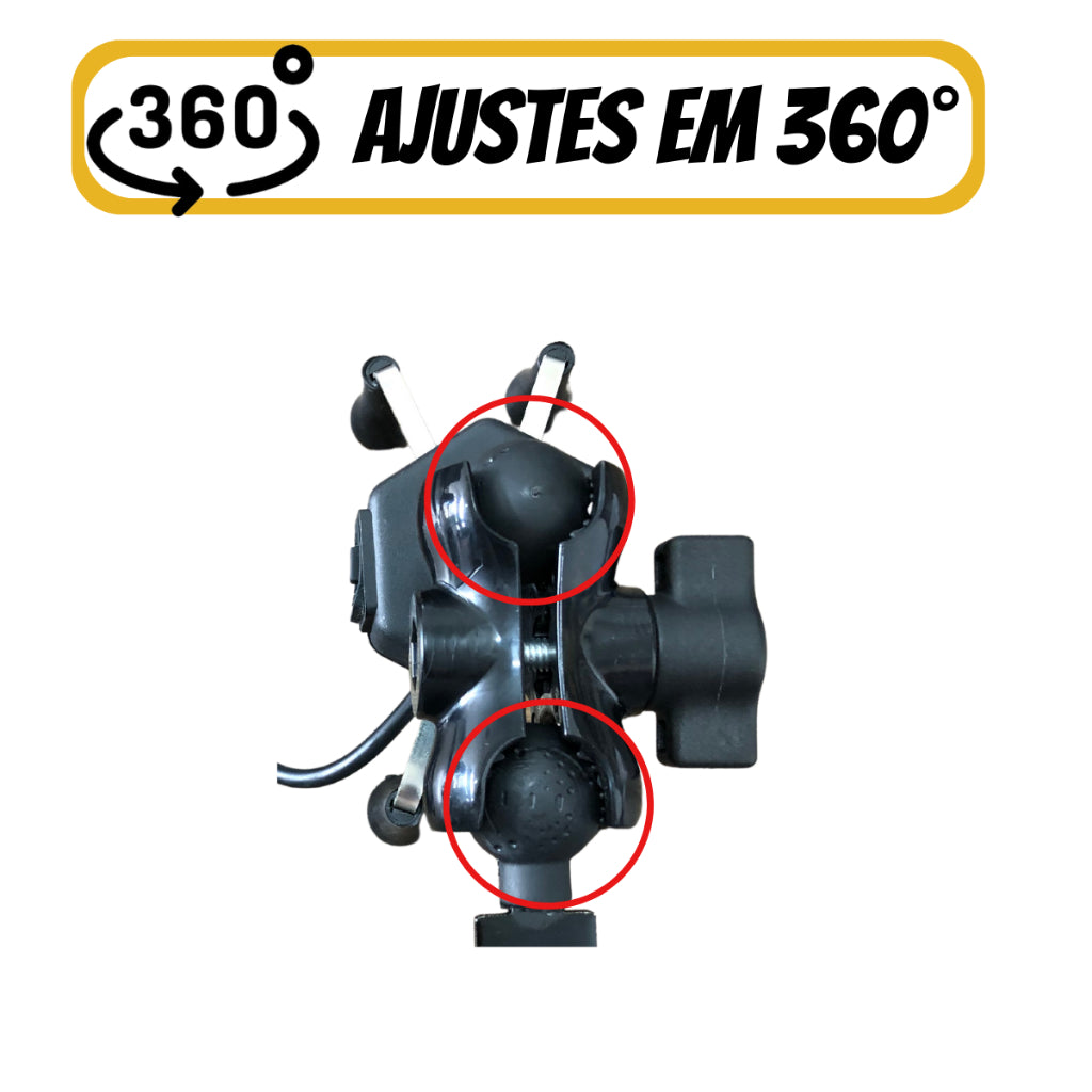 O suporte de celular para motos tipo universal com carregador USB turbo é ideal para quem precisa utilizar o GPS durante a pilotagem ou ficar atento às notificações no celular.Ele é instalado no retrovisor e o cabo do carregador é ligado na bateria da motocicleta de forma super rápida e prática. Possui botão liga e desliga para não descarregar sua bateria.Tem fixação tipo garra em X super firme com borrachas nas pontas que garante segurança para o seu celular, além de contar com um elástico que deixa o celular ainda mais firme.Compatível com todos os modelos de motos e celulares, possui duas articulações para melhor posicionamento do produto.Benefícios:* serve em todos os modelos de motos* com carregador usb turbo* fixação firme e segura* elástico de segurança* borrachas de proteção reserva* instalação fácil e prática* botão liga / desliga para não gastar a bateria da motoInformações técnicas:* Suporte Universal tipo garra aranha em X* Possui entrada USB à prova d’água* Carregador Turbo 5V***** CONTEÚDO NA EMBALAGEM *****- Suporte para celular GARANTIA DE 30 DIAS!!! PRODUTO COM NOTA FISCAL!!DESPACHAMOS NOSSAS VENDAS EM ATÉ 24 HORAS ÚTEIS APÓS A CONFIRMAÇÃO DO PAGAMENTO!!