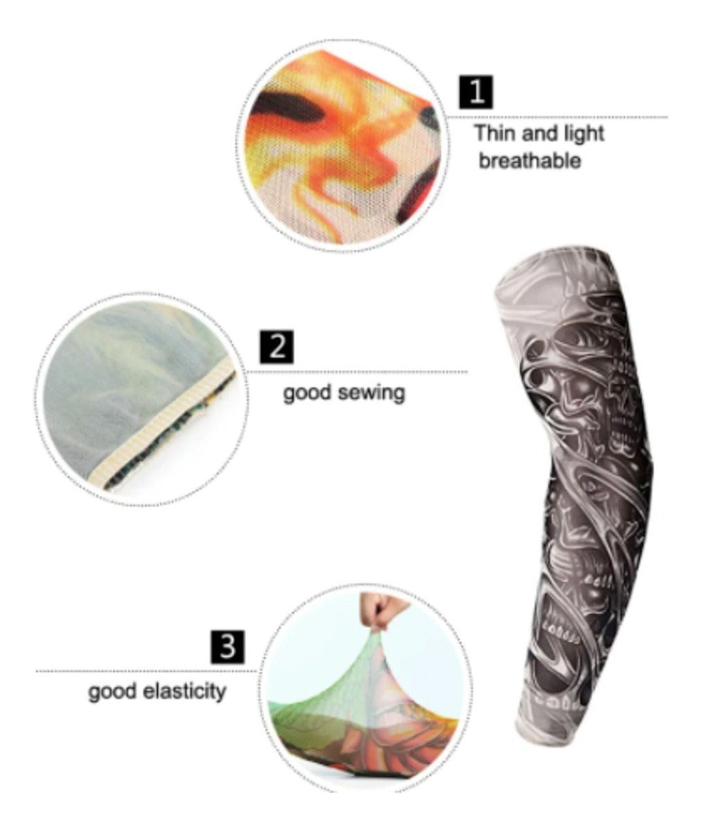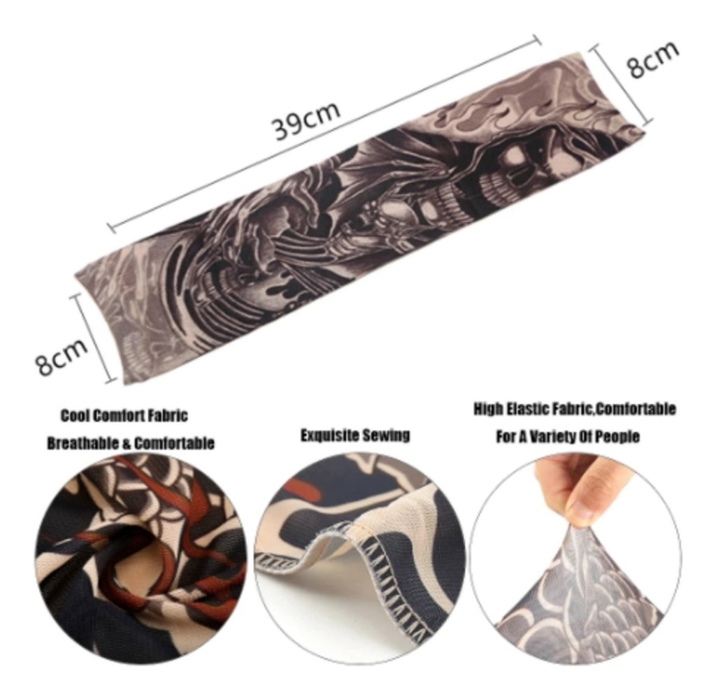 ( EMBALAGEM CONTEM 1 PAR - NÃO É POSSÍVEL ESCOLHER O DESENHO )Pacote: 2 peças manga tatuagem (enviadas aleatoriamente)A Tattoo Sleeve é uma meia com desenhos que imitam uma tatuagem, pode ser usada nos braços ou nas pernas. OBS : Como são muitos modelos, o envio é aleatório, porém todos são lindos * Nome do item: Manga de tatuagem Gênero: Homens, Mulheres Material: Nylon - ElastanoCaracterísticas: Confortável, Elástico, Efeito Tatuagem Padrão, Uso Exterior. Tamanho: Tamanho Único - Serve a maioriaComprimento (Sem Esticar): 38cm/14,96 (Aprox.)