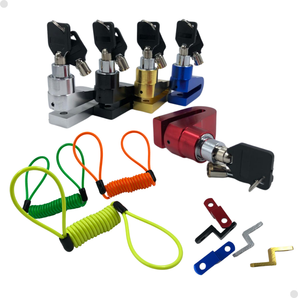 Tranca para moto freio disco bike cabo lembrete mais 2 chaves