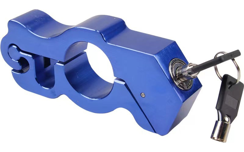 Produto com NOTA FISCAL E grantia Desenvolvida com alta tecnologia e materiais altamente resistentes, esta trava atende as principais necessidades para segurança da sua moto.Um produto com excelente custo benefício, uma vez fixada no manete, a trava Anti-furto Tecklock dificulta e inibe a tentativa de roubo. Ela é diferente dos demais sistemas de segurança oferecidos no mercado, que são facilmente esquecidos de serem removidos ex: trava de disco, cadeados e correntes) e que muitas vezes podem causar acidentes e danificar sua motocicleta.A Trava de Manete por bloquear o acelerador e freio é impossível de ser esquecida, pois está ao alcance direto dos olhos e mãos do piloto. DADOS TÉCNICOS• Acompanha 4 calços para ajustar de acordo com sua manopla- Manoplas de 32 a 38mm de diâmetro.• Possui espaço para cabo de aço para prender o capacete.• Trava o acelerador impedindo de ser rotacionado e mantém a moto frenada!• Feito em alumínio maciço 6351 tempera T6 (alta dureza) componentes em aço inox 304• Atende 99% das motocicletas do mercado. (ficando de fora somente alguns modelos de Custom)• Fácil de armazenar e carregar, pesa menos de 400 gramas• Acabamento em anodização química.• Dimensões (LxAxP): 130x56x26mm• Fechadura tubular especial de múltiplas combinações, fecha com apenas um clique! COMO USAR1- Encaixe na manopla do acelerador pressionando o freio;2- Em seguida pressione o miolo para fechar;3- Ao fechar a trava verifique a folga, a manopla não pode girar com facilidade. ITENS DA EMBALAGEM1 trava de manopla2 chaves4 calços de ajusteGarantia do vendedor: 3 meses